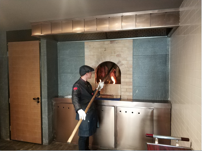 儿童娱乐区 烤鸭师傅在烤鸭炉前工作