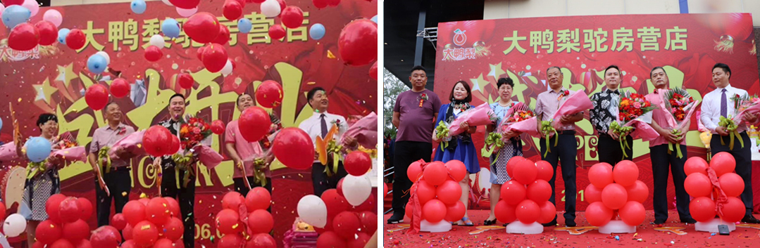 经过几个月的精心筹备,大鸭梨驼房营店于2018年6月9日正式隆重开业。总经理郭琦、副总经理江武、董事会成员及各事业部总经理、总厨、公司各职能部门负责人共同出席了本次新店开业庆典。
