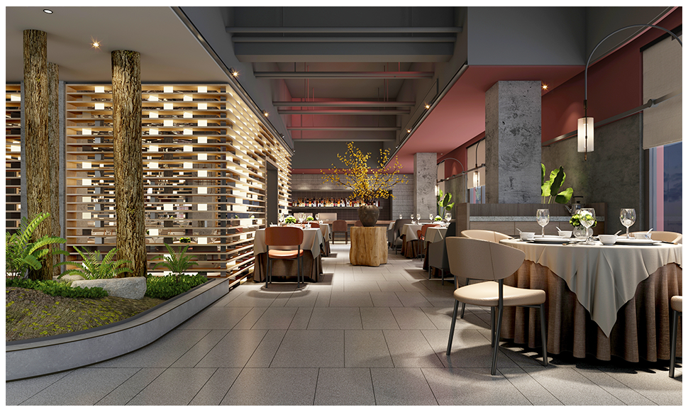 素雅的原木与温馨的灯光勾勒出“烤”的简约的线条,塑造出不拘一格的时尚京味用餐氛围,通过空间布局结构展现炭火的魅力。